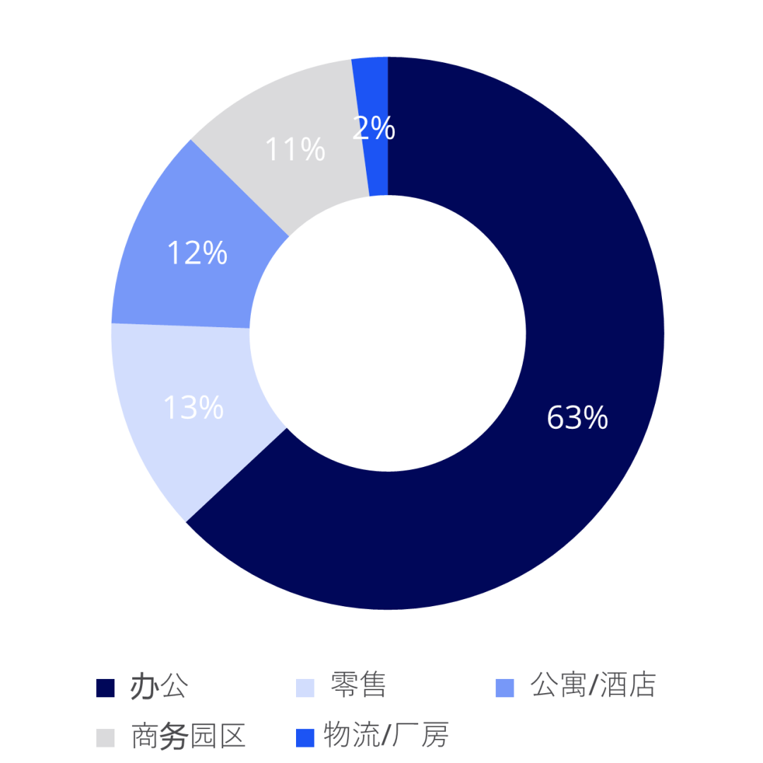从交易金额看,2025年上半年最大占比仍是办公业态,占比达63%;零售业态交易金额占比第二,其次依次为公寓/酒店、商务园区等业态。