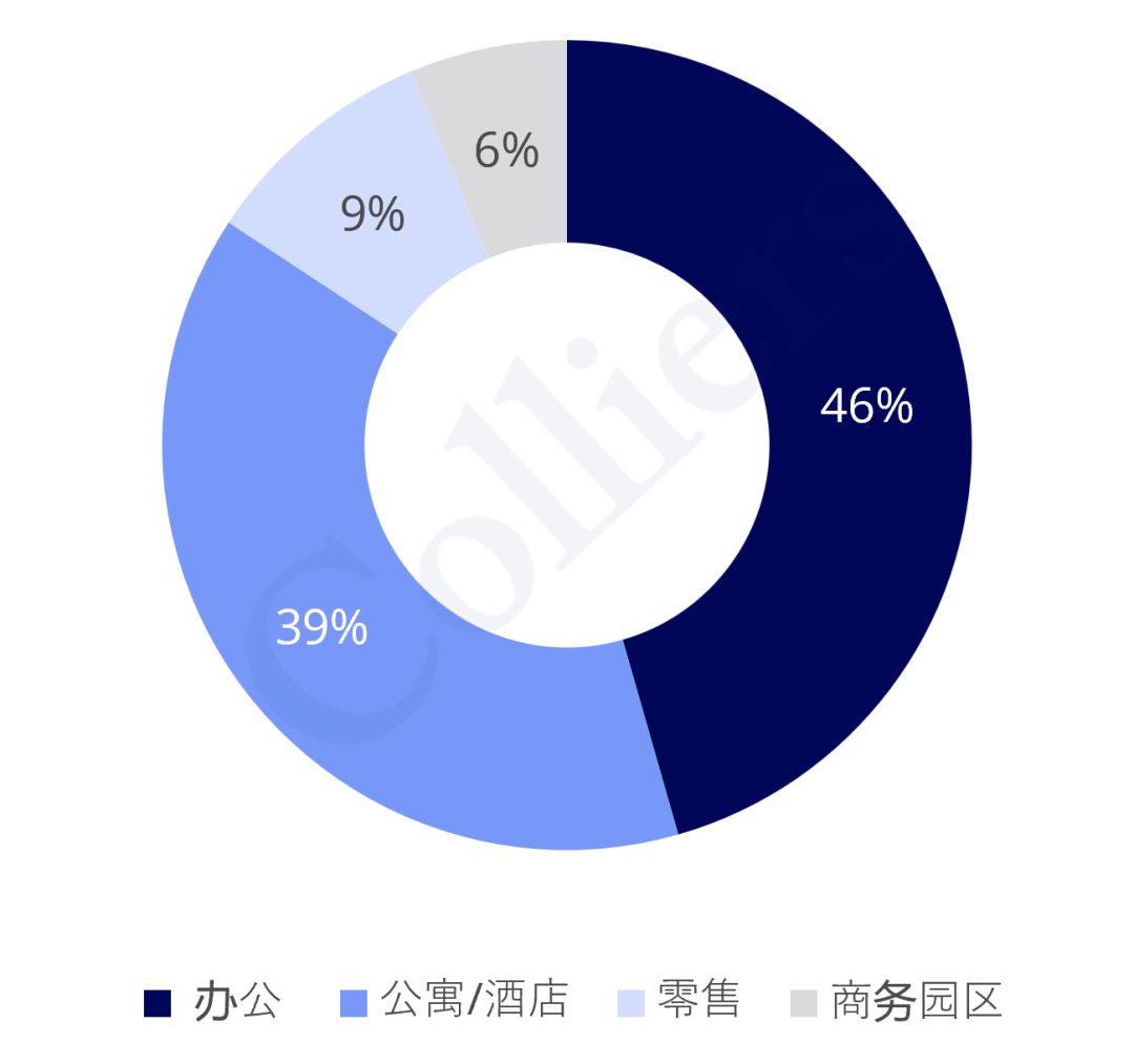 从交易金额看,上半年办公类仍然是交易最活跃的物业业态,占比达到46%;公寓/酒店类资产交易略低于办公业态;其次依次为零售及商务园区。