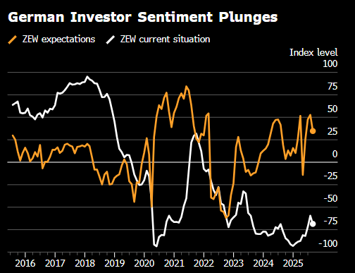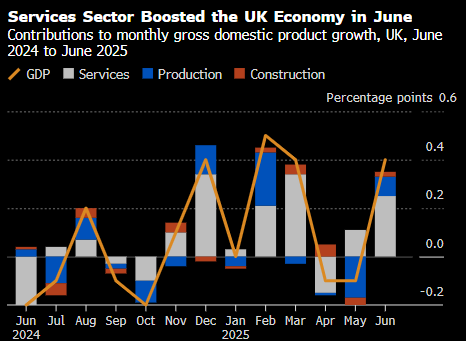 与欧元区一样,英国的指数一直比 50 这一扩张与收缩的临界点高出 1-2 个点。分析师将关注欧洲企业对布鲁塞尔与华盛顿之间关税协议的反应,此前德国投资者信心大幅下滑。