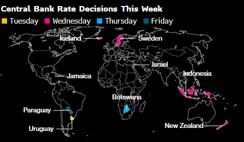 除欧洲外,南非将于周三公布通胀数据,预计 7 月物价涨幅将从 3% 加速至 3.5%。以色列将在同一天确定借贷成本,分析师预计利率将连续第 13 次维持不变。卢旺达和博茨瓦纳将于周四制定利率政策。