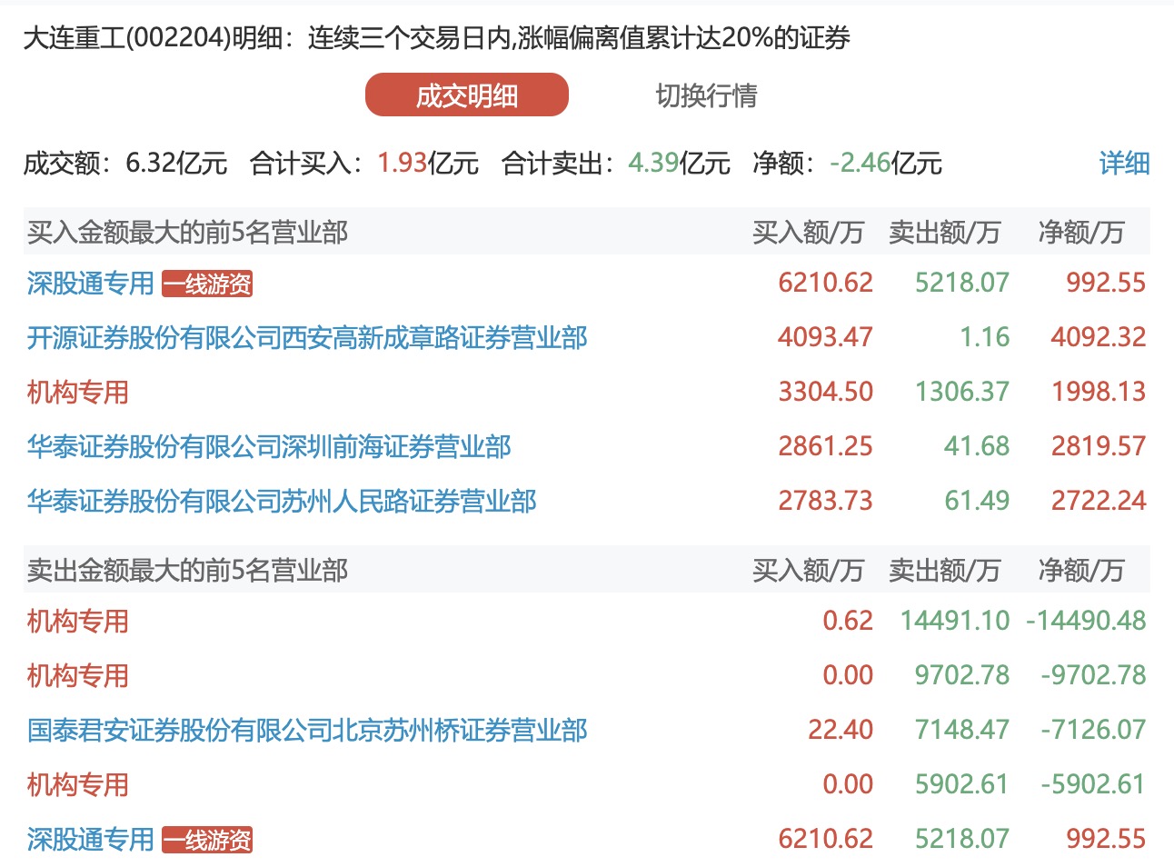 大连重工今日涨停 三机构专用席位净卖出2.68亿元大连重工今日涨停 三机构专用席位净卖出2.68亿元