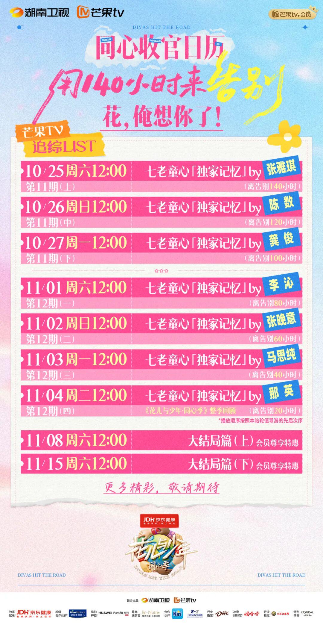 更多精彩内容,敬请关注《花儿与少年·同心季》。10月25日、26日及27日,每天12:00芒果TV正片三更,SVIP抢先看。本周六22:00湖南卫视播出。