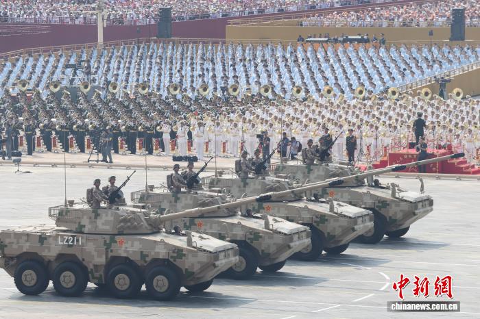 9月3日,纪念中国人民抗日战争暨世界反法西斯战争胜利80周年大会在北京隆重举行。图为中国人民解放军仪仗方队接受检阅。 中新社记者 赵文宇 摄