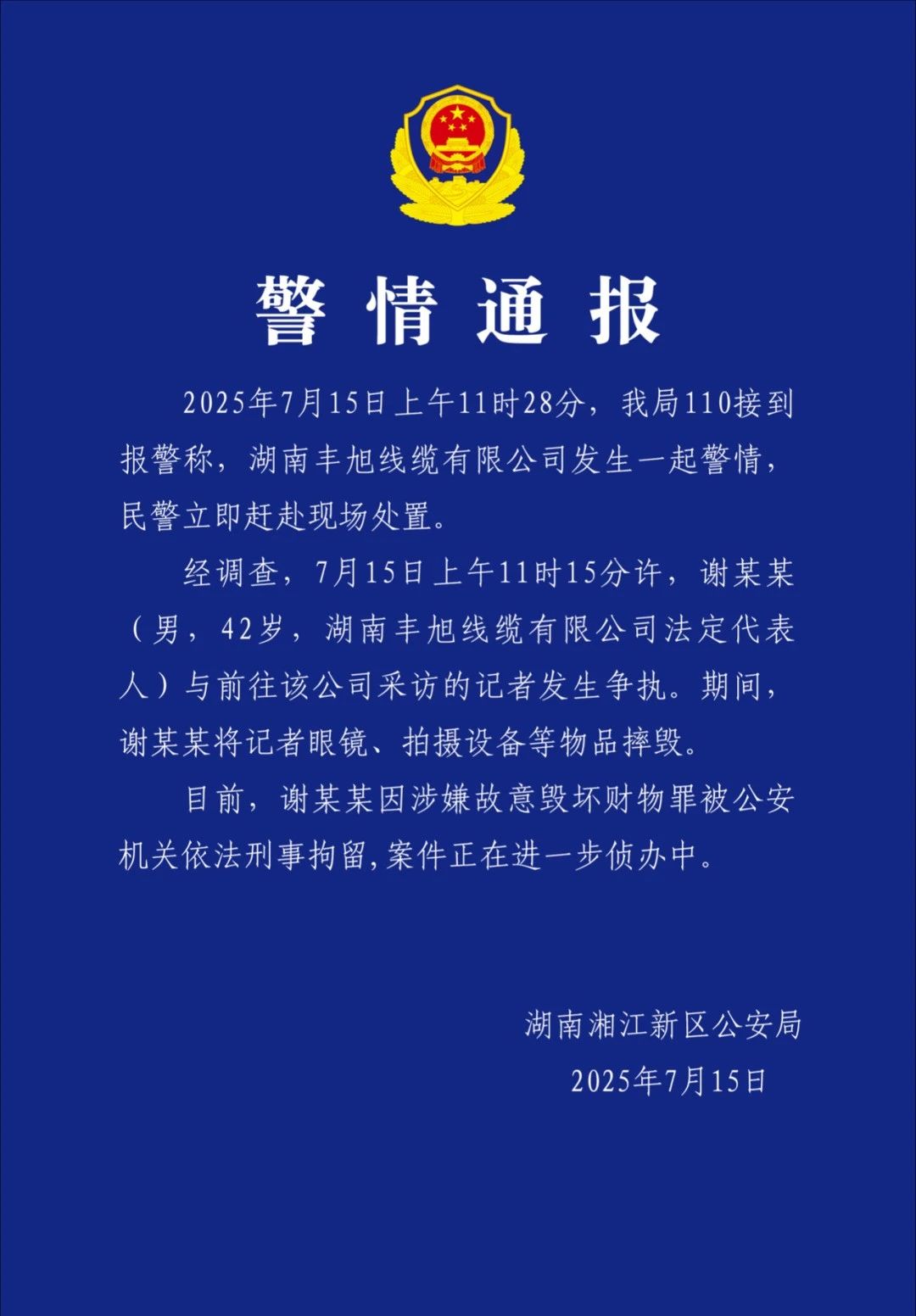 长沙公安通报“记者采访时物品被摔毁”事件:谢某某被依法刑拘金河配资长沙公安通报“记者采访时物品被摔毁”事件:谢某某被依法刑拘