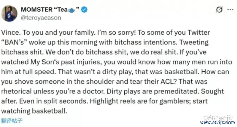 对于这个严重的后果,不少球迷都在社交媒体上批评伊森。而伊森母亲随后也在社媒发声道歉,但表示自己儿子只是正常的篮球动作,并非故意伤人。